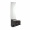 Crewe Orlando Oxford Styling Unit. Wall mounted styling unit with metal footrest, wooden shelf and integral dryer holder. The wooden frame is available in Black laminate, Wenge laminate, Light Beech laminate and Walnut laminate (please use drop down box to select your laminate and see below for colour chart). Please call us on 01270 630280 to discuss availability and delivery times.