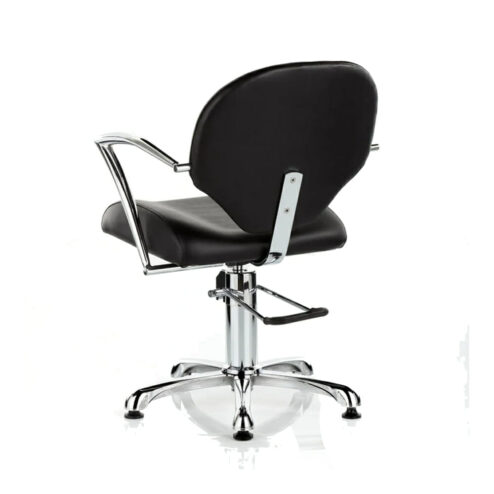 Direct Salon Supplies Denver Hydraulic Styling Chair. A simple yet stylish salon chair. Finished in a smooth Black fabric with polished chrome arm rests. Comes supplied on a 5 star hydraulic base.