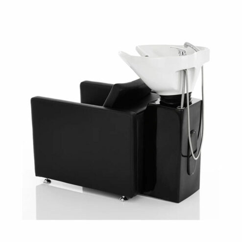 Direct Salon Supplies Galaxy Washpoint Complete. Washpoint with black upholstered chair or in black snakeskin. Comes complete with Black base cabinet, white tilting basin, mixer taps, handspray and hose.