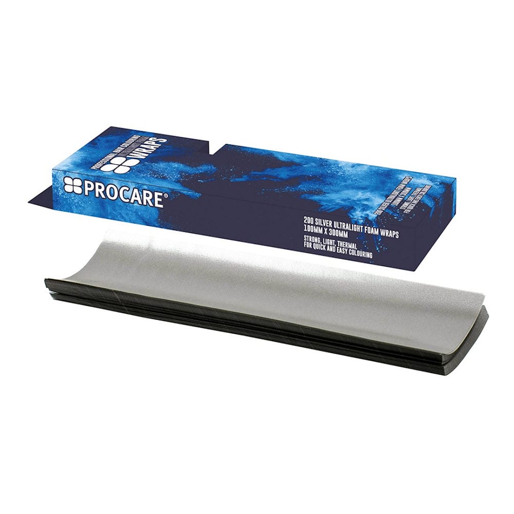 Procare Ultralight Foam Wraps Pack 200. Light thermal foam wraps for quick and easy colouring and multi toned colouring. Available in silver, gold or mixed (please use the drop down box to choose).