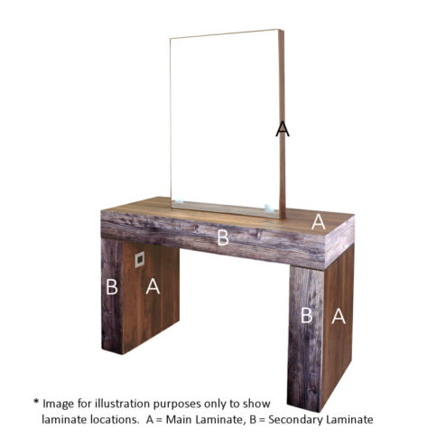 The REM Glow Make Up Styling Unit. Offering light and style to any hair salon or beauty and make up area. Available as a wall or island unit offering 1 to 8 positions. The unit is available in all of the REM Laminates (see below for swatches). See fourth image for laminate locations.