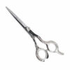 Samurai Diamond Collection Shoinobu Scissor is made from Japanese Takefu VG-1 Cobalt. It features a semi offset ergonomic handle and angled finger rings which help fight repetitive strain injury. it also has an engraving on finger rings, double hollow ground blades and adjustable tension dial with encrusted jewel in the dial. Available in 5″, 5.5″, or 6″ (please use the drop down menu to select your size and case design)