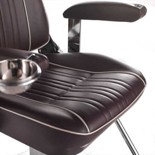 Takara Belmont GT Sportsman Barbers Chair. The very popular Takara Belmont GT Sportsman Barbers Chair is world famous for it’s reliability and versatility. It features; a spring loaded seat cushion and padded upholstered armrest for excellent comfort, a reclining backrest with adjustable and removable headrest allowing you to position the client as needed, and a heavy duty footrest with stopper.