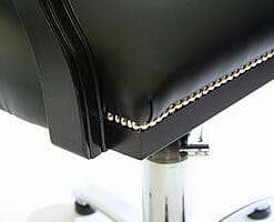 WBX Conti Hydraulic Styling Chair. The new Court hydraulic styling chair elegant, practical design with unparalleled attention to detail and build quality. The Conti styling chair conveys traditional quality through design and flair, hand built by craftsmen in the UK. to be enjoyed for many years to come. Bringing this time honoured design into the 21st century. The WBX design team have taken this traditional chair frame and richly transformed it to become the Conti which will grace any salon giving it an immediate sense of character. whether it is upmarket chic, contemporary, bohemian or a traditional barbers shop. WBX have used chrome studs to add detailing of the chair seat and back to contrast with the chrome disc or 5 star base. the Conti is available in any colour upholstery, (please ring 01270 630280 to arrange for colour swatch to be sent out), available on round base or 5 star base. Both come with a 5 year guarantee on the hydraulic. Please allow 21 days for delivery on the WBX Conti chair.